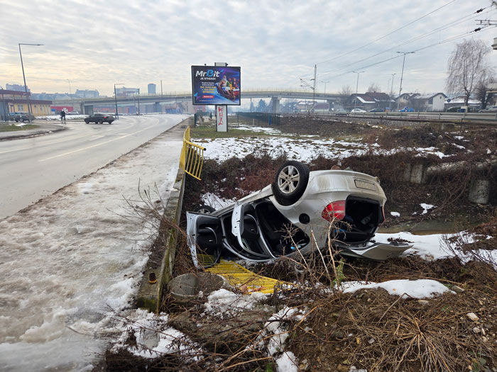 Na automobilu je pričinjena veća materijalna šteta, kao i na komunalnoj infrastrukturi, odnosno zaštitnoj ogradi koja je uništena pri slijetanju.